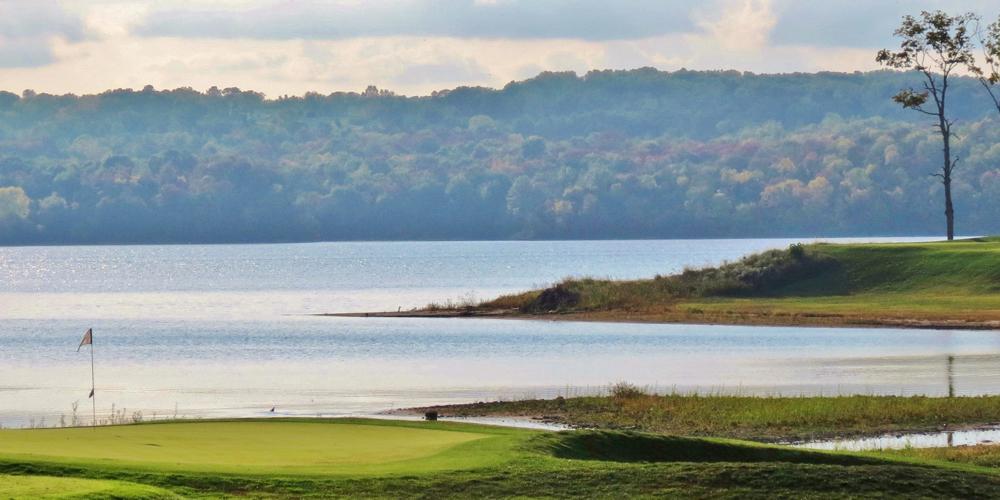 Harbor Links Golf Club was originally designed and constructed by P.B. Dye in 2002 as a lake side, championship resort course open to the public. Since then the course has come under the ownership and operation of Kent's Harbor and The Sagamore Resort as an integral component of the marina / golf resort. While maintaining its 7, 034 yard length from the long tees, Harbor Links has incorporated three sets of forward tees to suit and challenge a wider range of player skills. The par 72 course features a variety of undulating bent grass greens, many of them elevated, with four greens in direct proximity to Brookville Lake. Indeed, vistas of Brookville Lake and the surrounding hillsides of the Whitewater River Valley come into play on every golf hole. The bent grass fairways meander around the natural terrain with only subtle earth work evident. The golf course is situated within a 17,000 acre state recreation area with few signs of the modern world other than the sounds of boats plying the lake. Another of Harbor Links features is the recognition and utilization of the valley's history. Dry stacked concrete slabs of old Indiana State Road 101 fortify greenside banks and shoreline. A disused county bridge once leading to Bath, Indiana is back in service on golf hole # 12. Par five # 5 features a tribute to old Sims Cemetery with its unique fairway bunker complex. Harbor Links at the Sagamore Resort offers convenient Stay and Play options with the opportunity to include on-site boating or fishing in your stay. While less than 60 minutes from Cincinnati and under 90 from Indianapolis this championship golf course, crafted by a world renowned designer feels a world away.